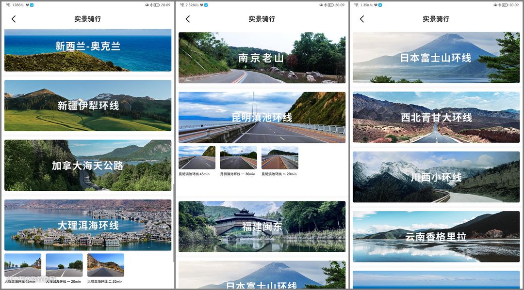 然后最大的一个惊喜,是客户端的实景模拟运动,内置了很多有名的户外骑行场景,就如同在户外骑行一般,还能在线和其它野小兽的骑行用户竞速争榜,很高端的感觉。