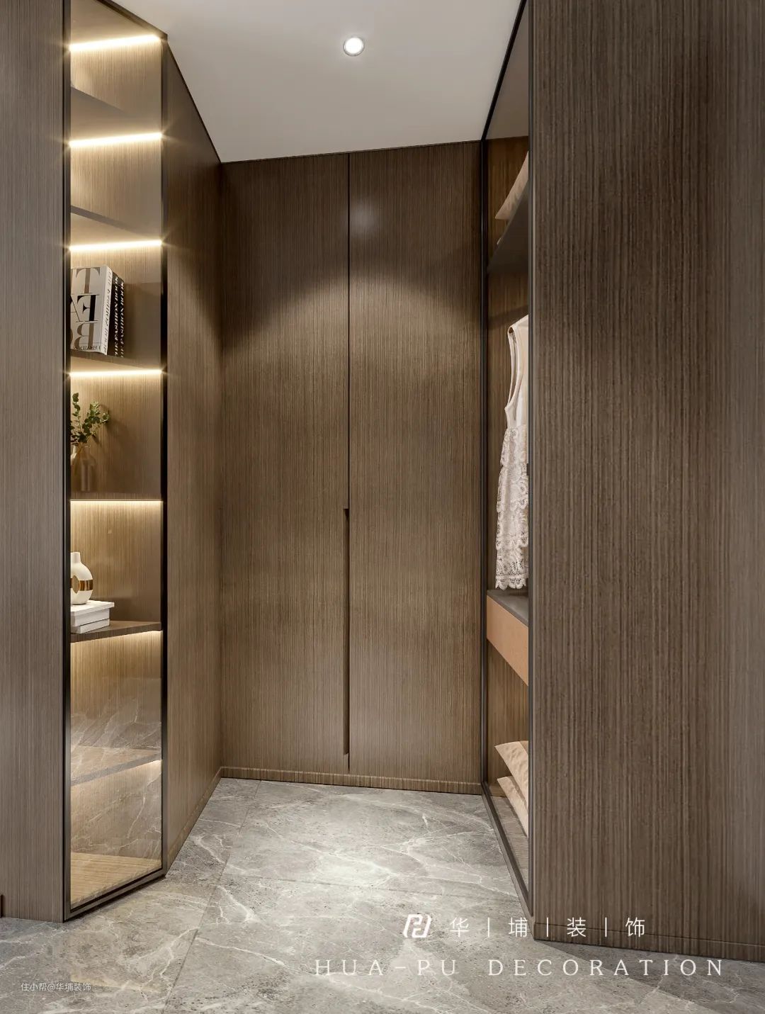 3)主卧衣帽间墙体拆除,增加储物功能和整体感;