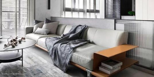 一般茶几摆设位置多在沙发前,但拿取物品时还要起身,所以有些沙发款式体贴地在侧边增加了边几设计,让沙发不仅可供乘坐,还附有平台、置物桌或抽屉等功能,可以放置茶盘、书本或收纳常用的小物等,几乎能完全取代茶几,方便又有型,也是小客厅想省空间的一大利器。