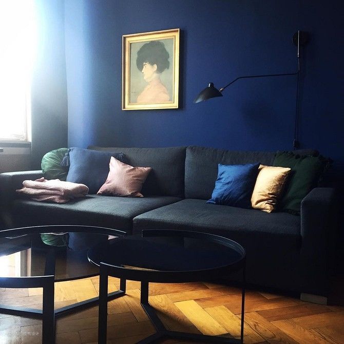 如果您厌倦了在小空间中使用经典色调,蓝色墙壁是一种能让内部空间显现多样化的好方法。