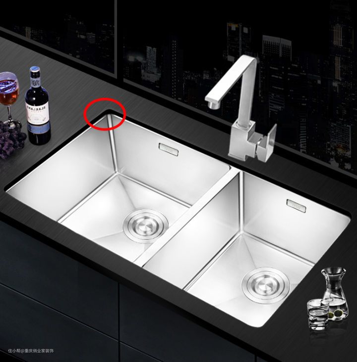 缺点:有些地方水龙头冲不到,需要配合抽拉式龙头;只有一个下水口不宜装垃圾处理器,影响垃圾处理器的使用寿命。
