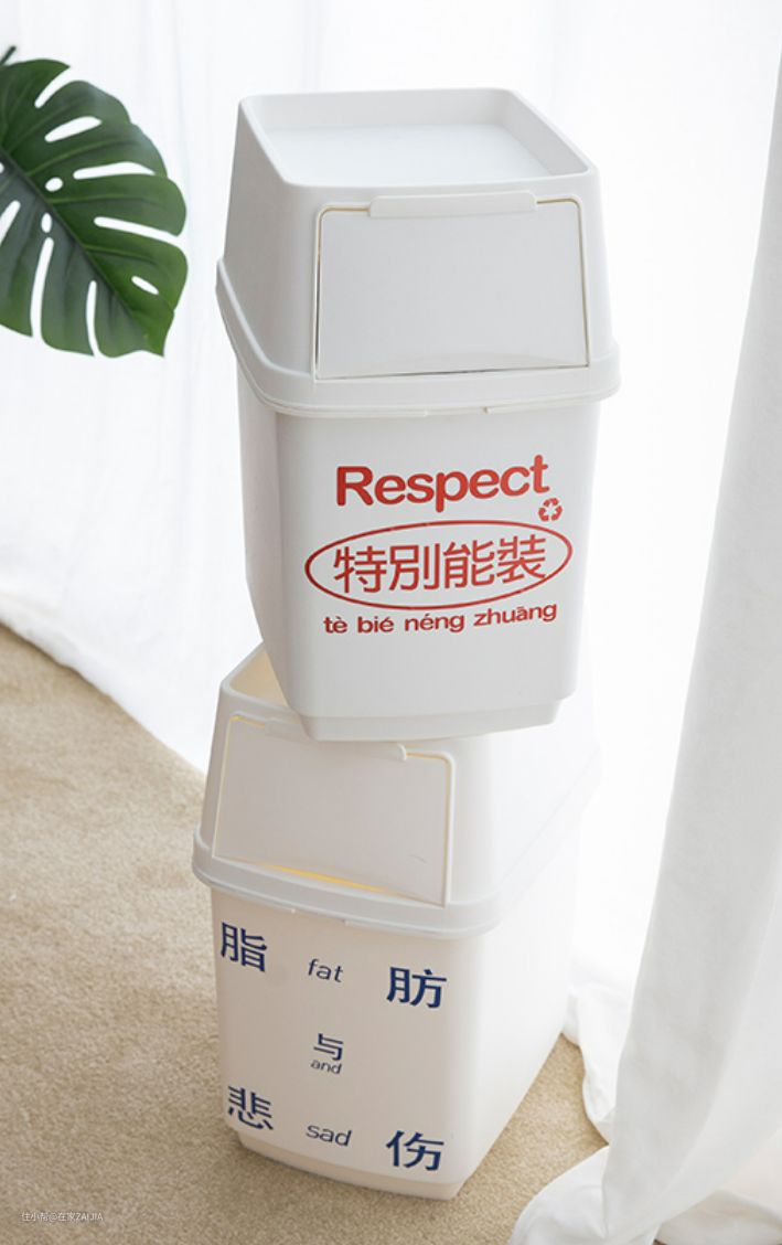 也有下面这些追求个性的创意垃圾桶,有文案花哨的、有造型奇特的,这样的垃圾桶,装修完拍“毕业照”,垃圾桶就不用躲在角落里了。