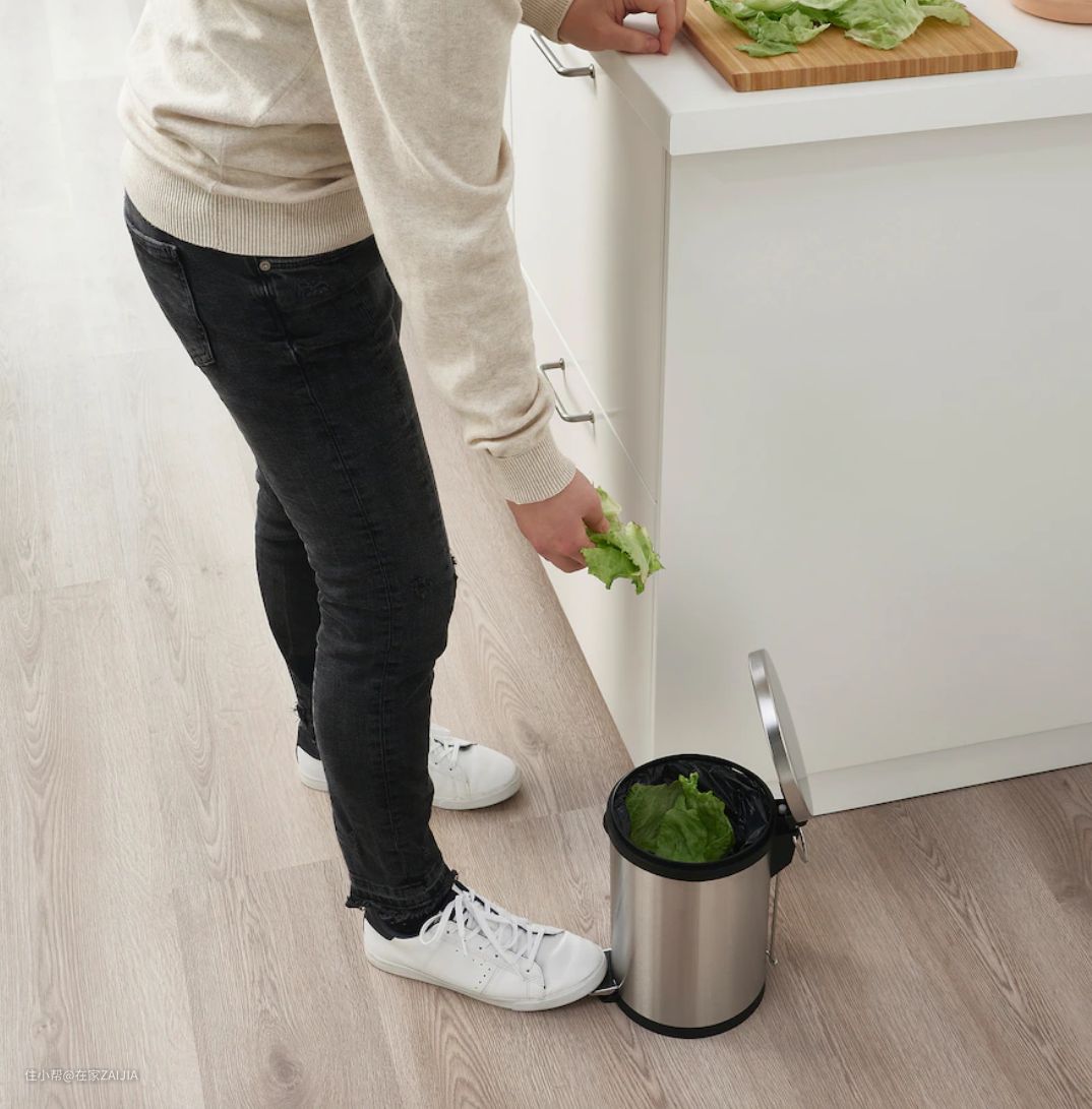 脚踩式垃圾桶放到厨房的话,也要考虑到踏板的长度和易用性,比如宜家这款脚踏式铁皮垃圾桶,网友纷纷吐槽踏板太短,深踩一脚不但没有效果,垃圾桶自己还会“后退”。