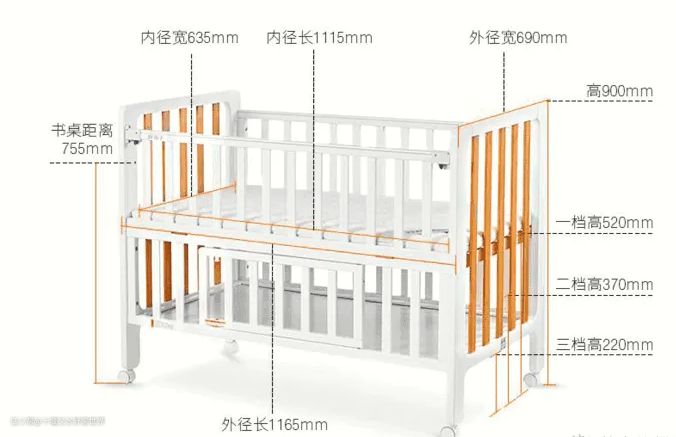 2、选购高架床时要注意下铺面至上铺底板的尺寸。一般层间净高应不小于950mm,以保证宝宝有足够的活动范围,不会经常碰到头。