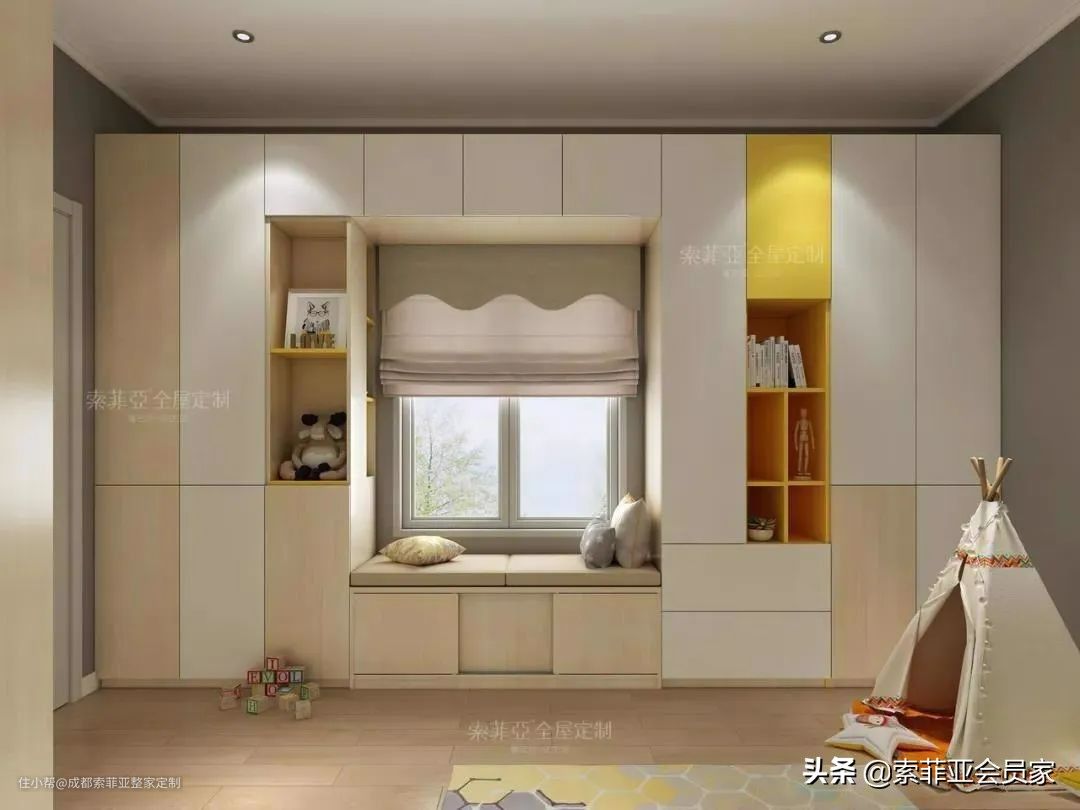 但是需要注意的是飘窗改造成储物柜后,由于高度的限制一般需要弯腰取物,因此不建议在老人的房间安装储物柜。