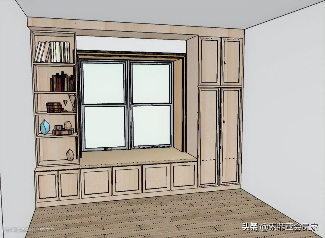 当然在设计时我们也需要考虑到飘窗的高度,需要把榻榻米床的高度做到和飘窗的高度一致。