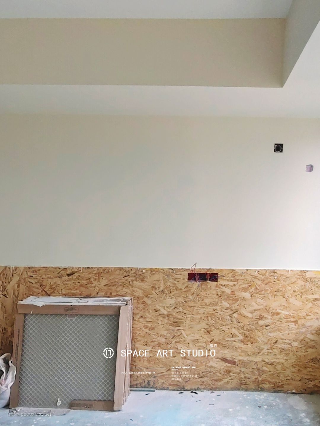 5、刷墙漆前需要先确定墙上腻子已经批刮好了,并且细节处打磨到位,这一步使用灯光照射到墙面上,查看墙面是否平整。