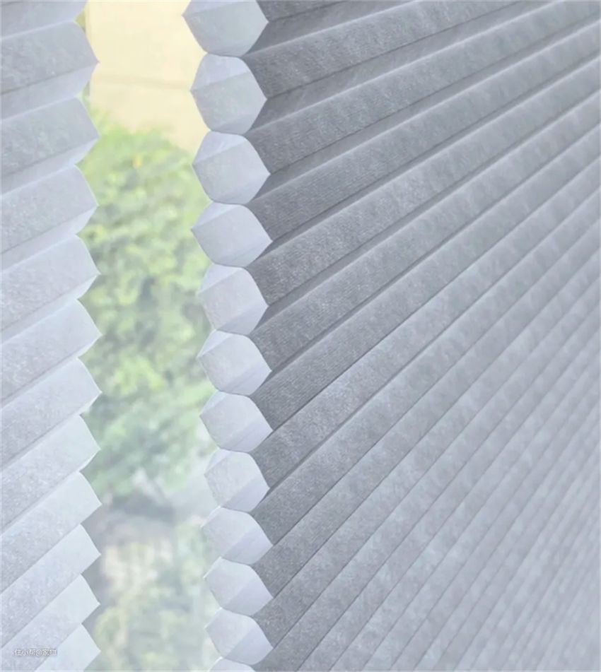 视觉也很像百叶帘,但它不是单独叶片,而是一片式蜂窝结构,无纺布面料。