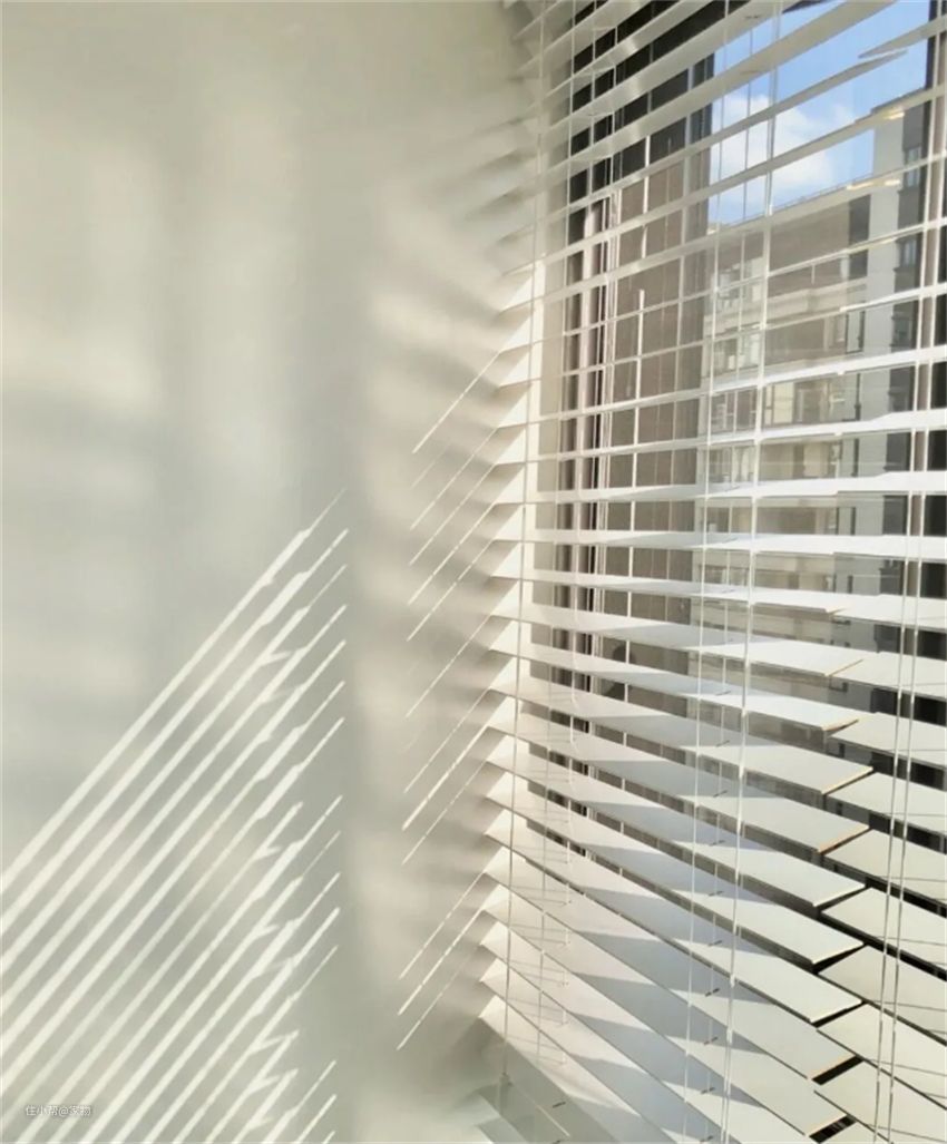 百叶帘类似于纱帘,但又比纱帘更高级一些。它既可做到透光不透人的效果,又能实现自然的光感。