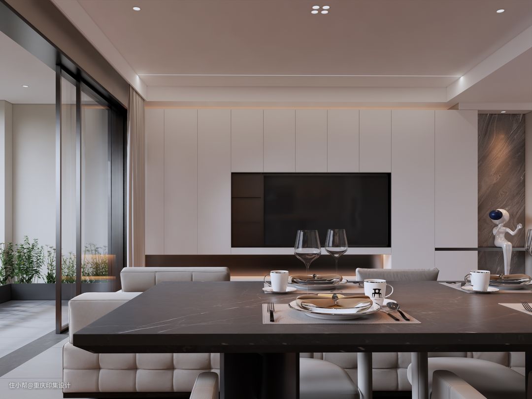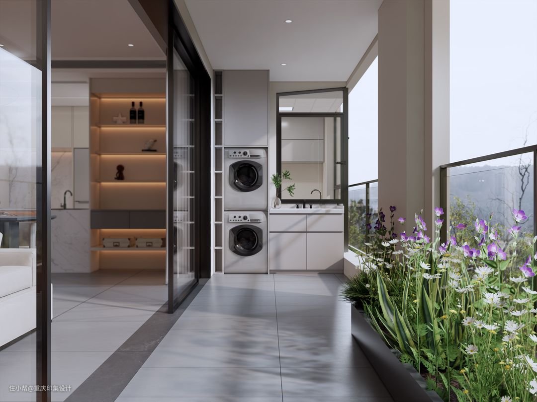阳台处,透明滑门设计,引景入室,不行一处,便可尽赏流云落花。