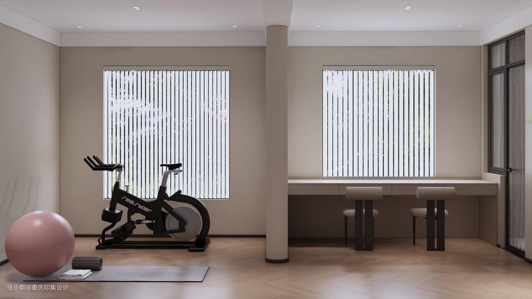 舍弃一个卧室,多一间更自由的天地。读书、运动,当下最时尚的两件事都有了。