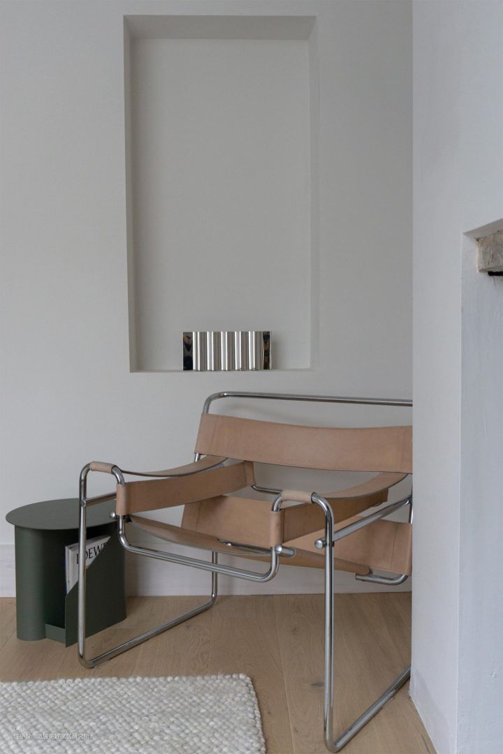 比如经典代表瓦西里椅子(Wassily Chair),于1925年诞生于设计师Marcel Breuer之手,在包豪斯主义影响下,运用裸露光滑的钢管作为椅子框架,简约设计感极强,搭配皮革表面,又复古又现代。