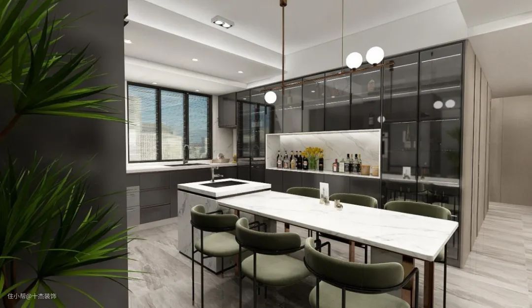 ▲餐桌+岛台一体化的设计,对于空间的利用会更加细致,也能让餐桌与岛台的质感统一,让空间风格更加和谐大气。