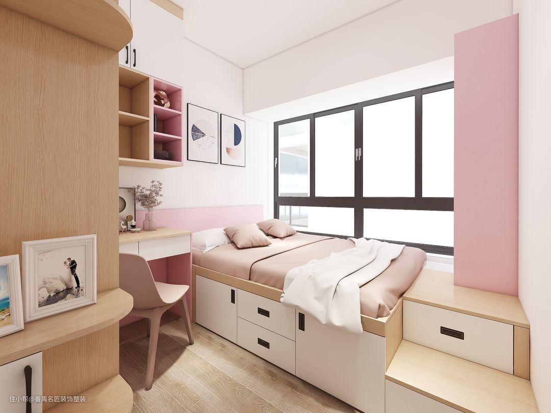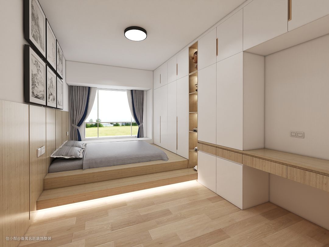 榻榻米可以说是小卧室的首选,家中房间不够大的业主,可以选择做榻榻米+衣柜一体化设计,这样就可以在一个房间内同时拥有睡眠、储物、学习等功能。