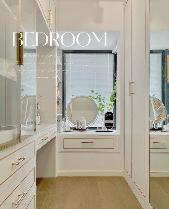 原精装这个是书房,刚好在主卧隔壁就做衣帽间了。奶白色亚克力肤感柜门加金边,一门到顶。飘窗位置打了抽屉,柜体是延伸到飘窗,拥有衣帽间每天都感到好幸福~