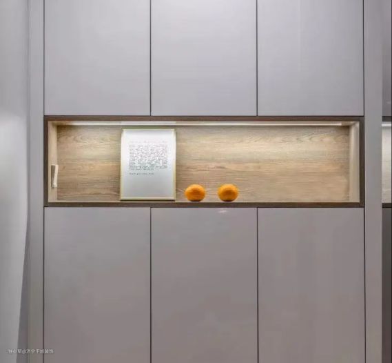 ⑷装饰性:随着现在生活品质的变化,鞋柜也成为了家庭中设计的一部分,在悬空区进行灯带的设计,不仅让层次感增强,还会让鞋柜突出装饰感来。