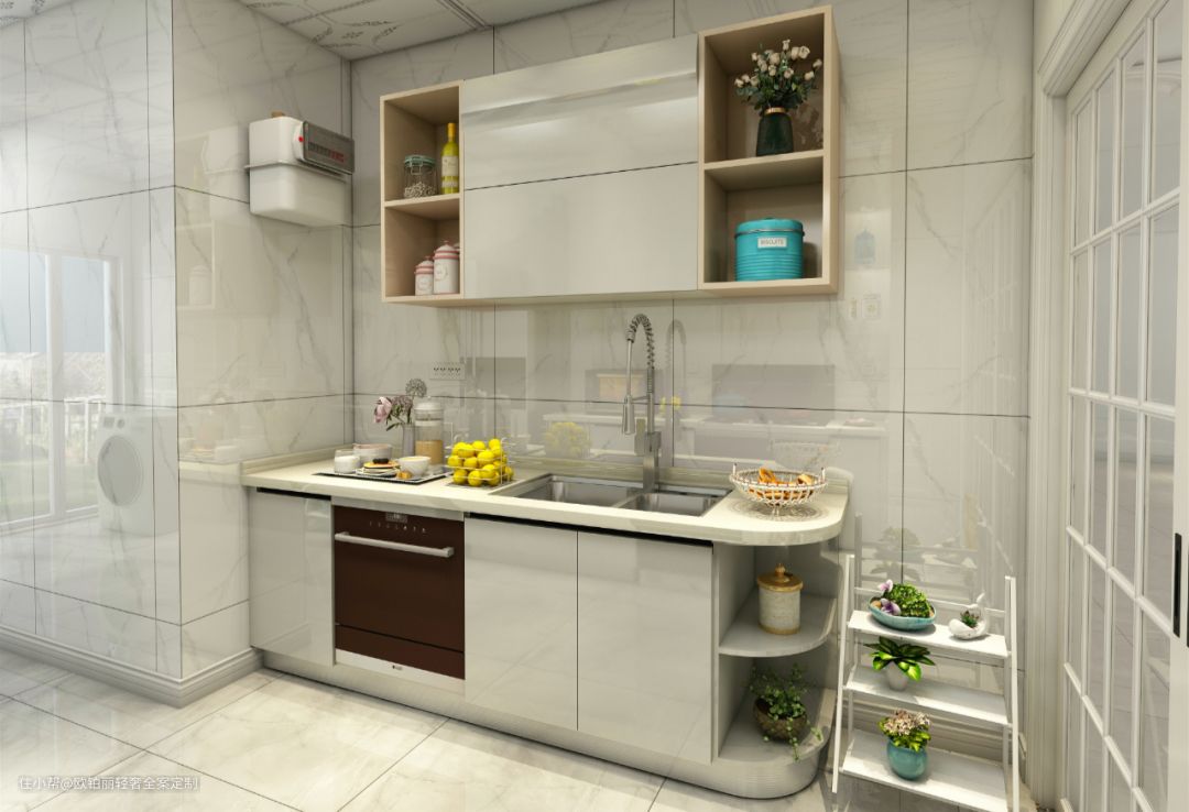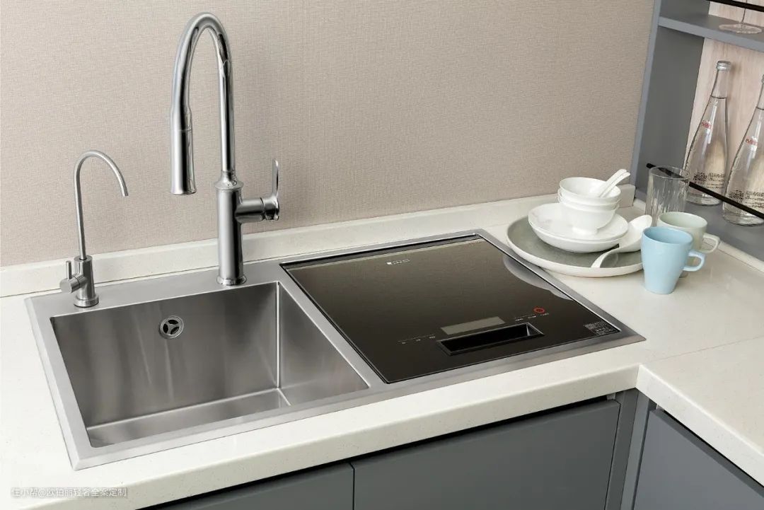 洗碗机嵌入厨房地柜,记得安装在水槽附近,方便连接水管。