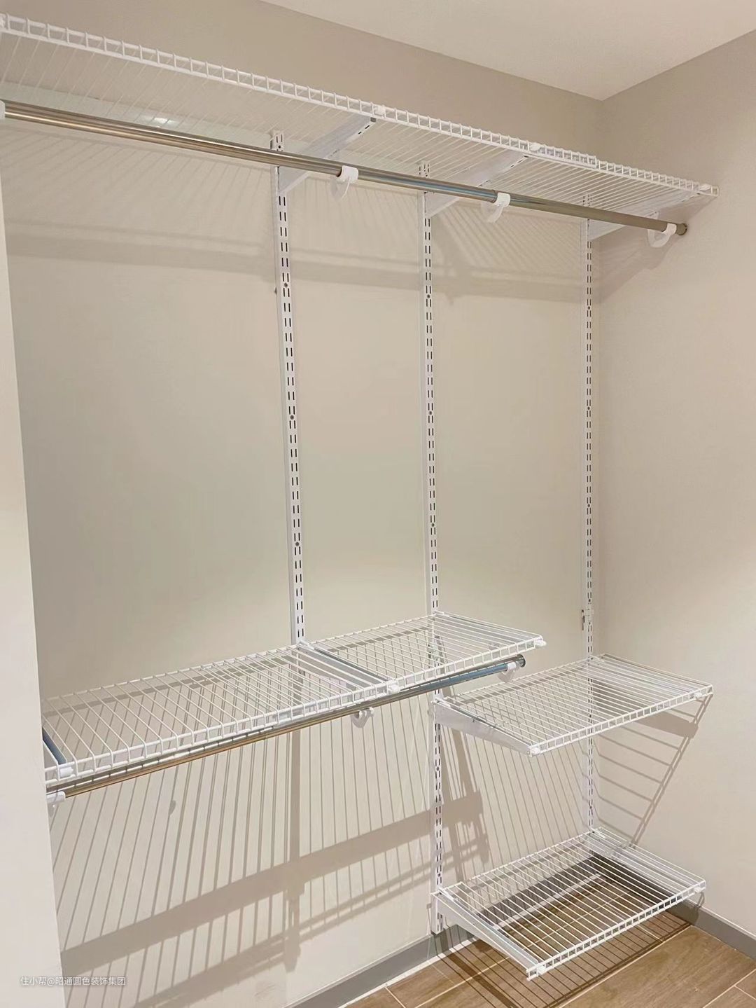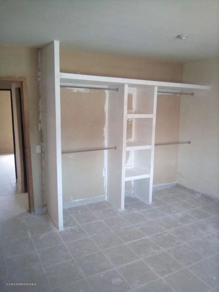 所以你们要是纯粹为了省钱,还做什么衣柜,直接在某多多某宝30多块钱买几个落地的挂衣架得了。你还折腾啥,还砌什么墙,做什么铁架子啊?