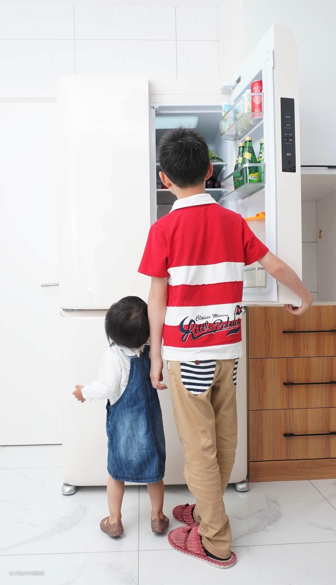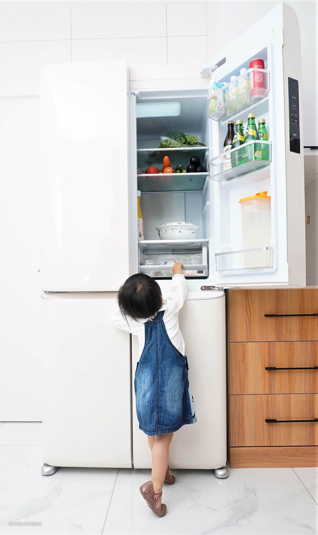 而小女儿知道变温区里装的是她的吃的后,趁大人开冰箱时就去拉两下!不省心*3!