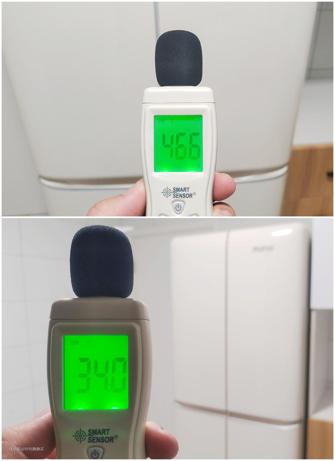 另外,近距离测得冰箱运行噪音为46.6dBA,在不到2米的位置,为34dBA。看来官宣的38dBA,还挺靠谱。