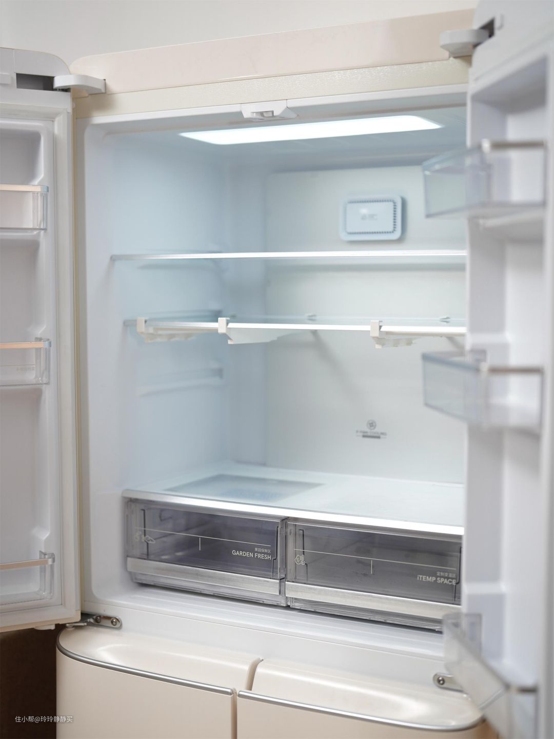 二是冷藏室下面的两个抽屉(果园保湿区+定制变温区),是最出彩的设计。(功能后面说)