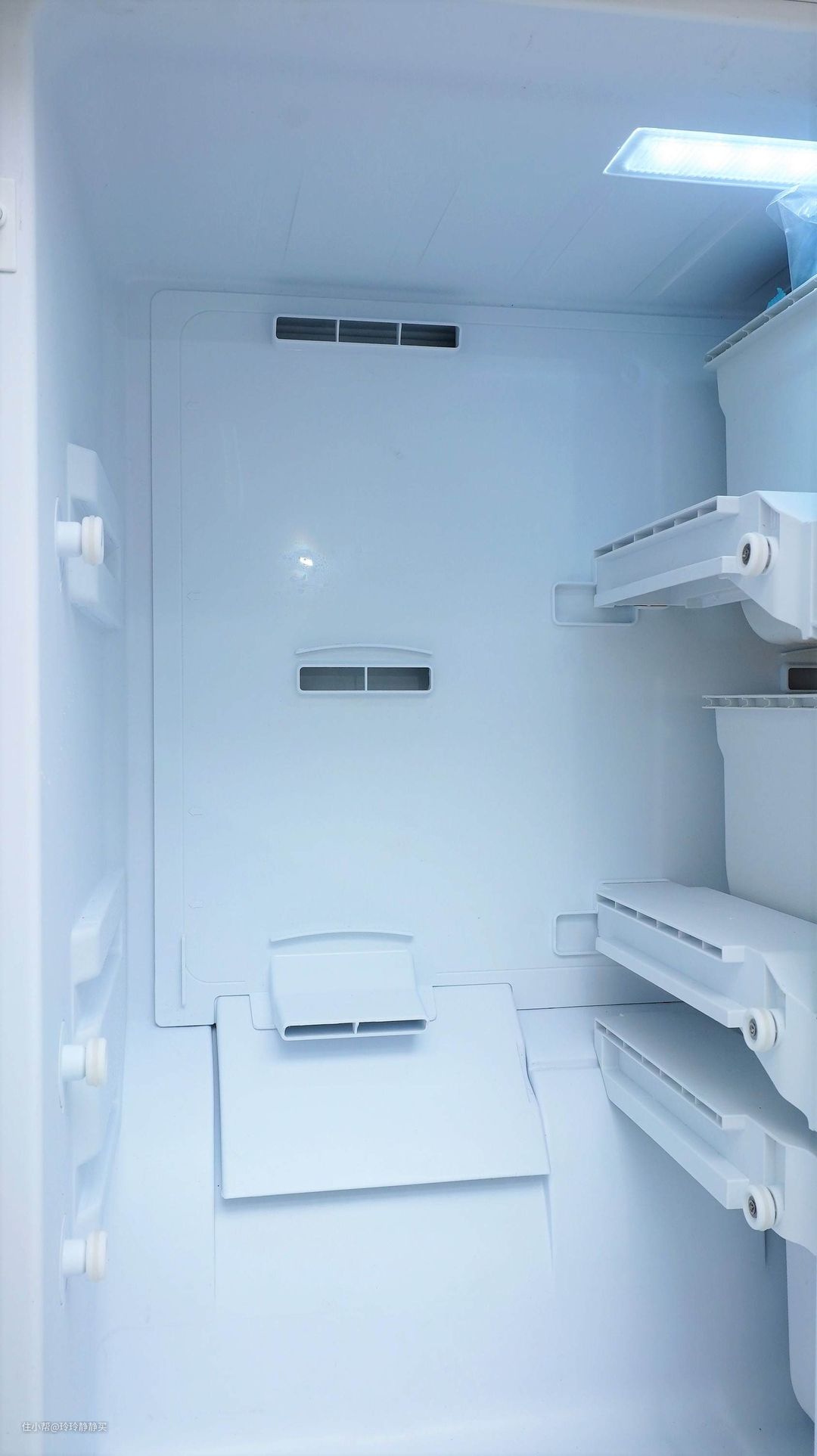 每一个抽屉后面都有单独的冷风输送孔,冷冻更有针对性,也相对不容易串味儿。