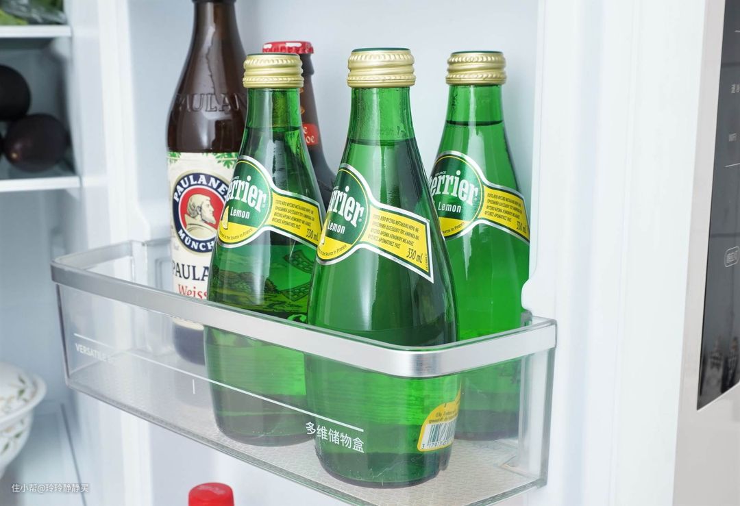 至于有多能装?可以纵向、并排放下2瓶330ml的玻璃瓶巴黎水。好奇的话,各位可以试一试家里的冰箱能不能?