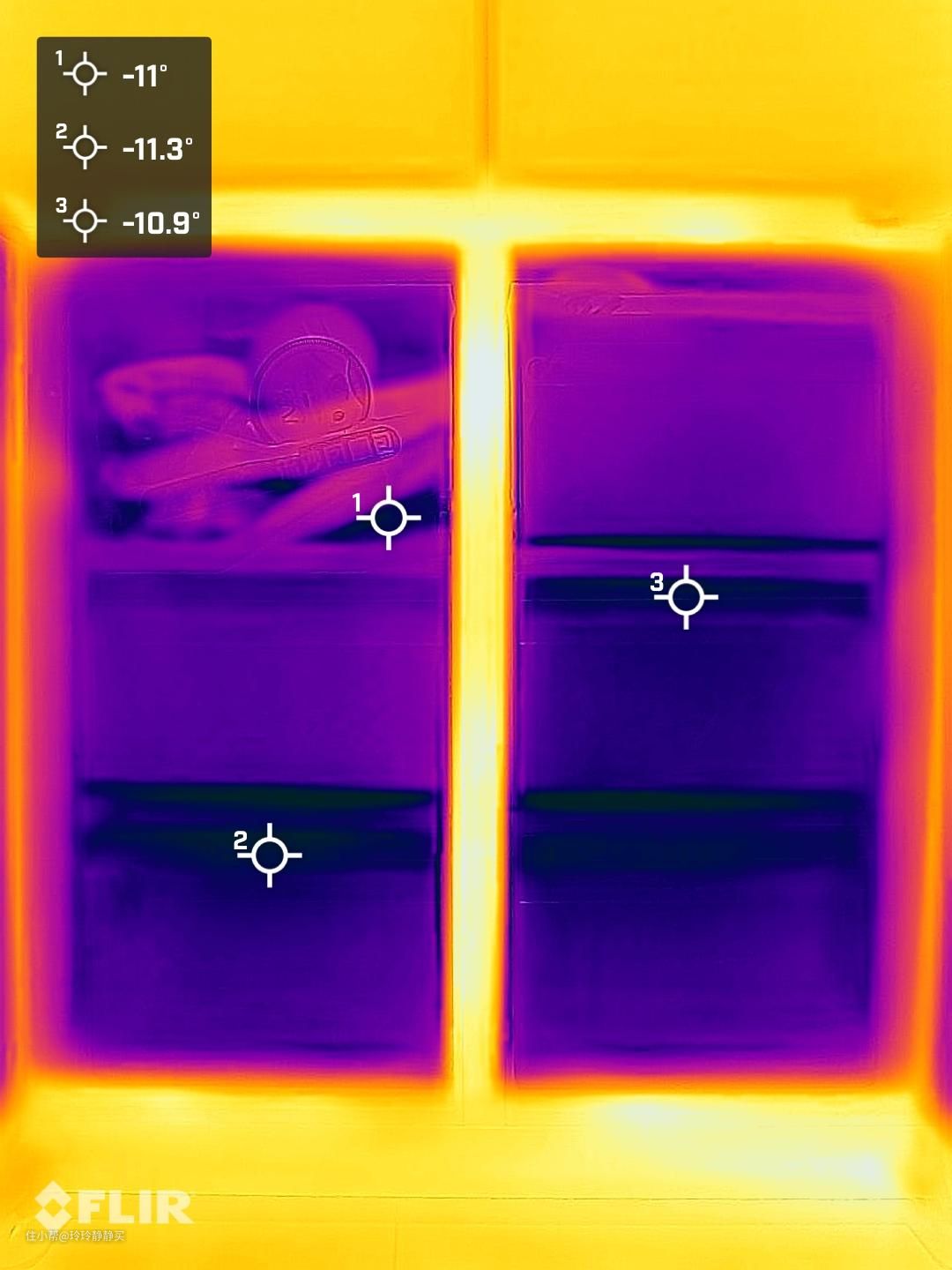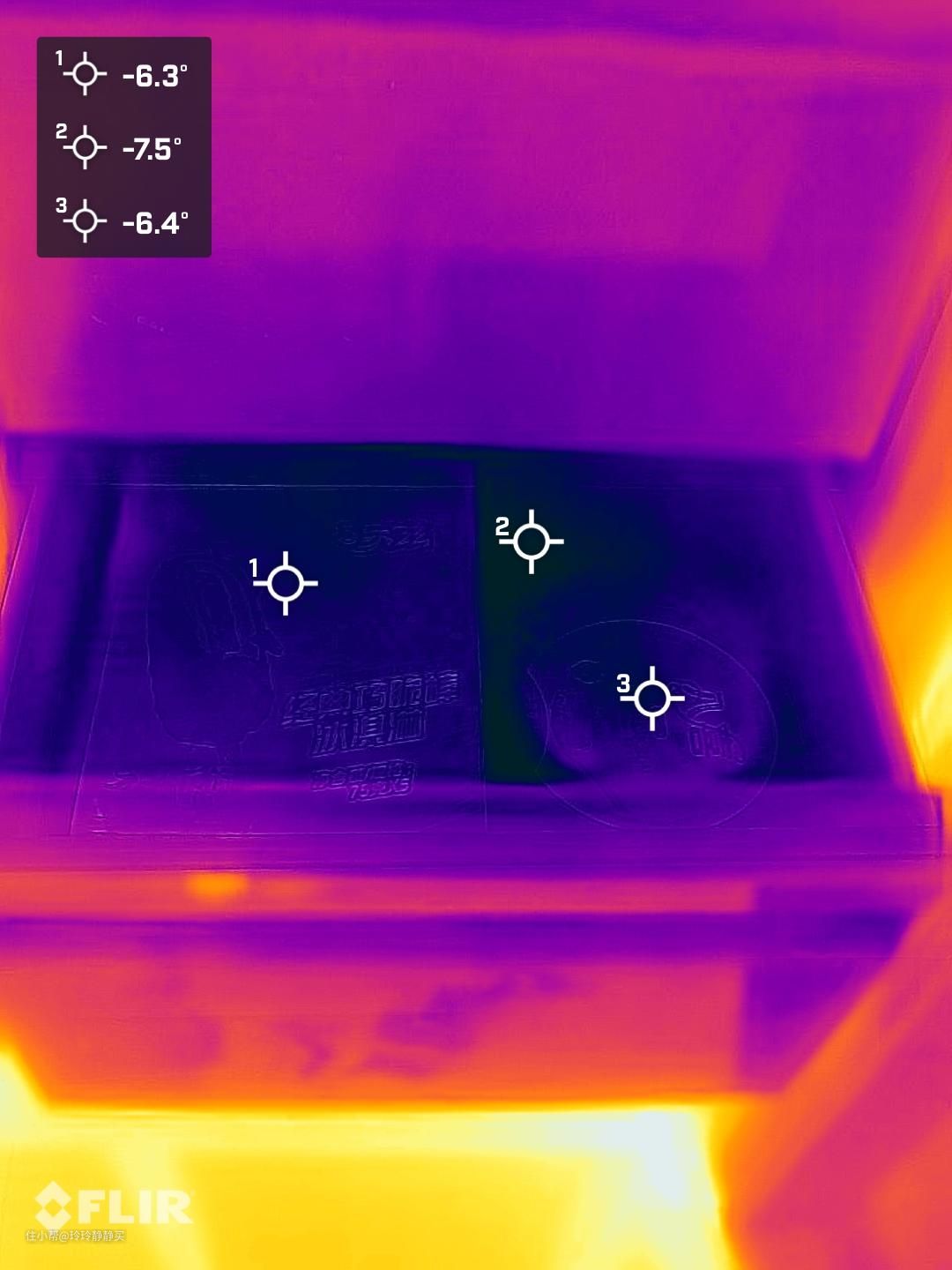 简单用红外测温仪,看了下冷藏和冷冻室的温度。