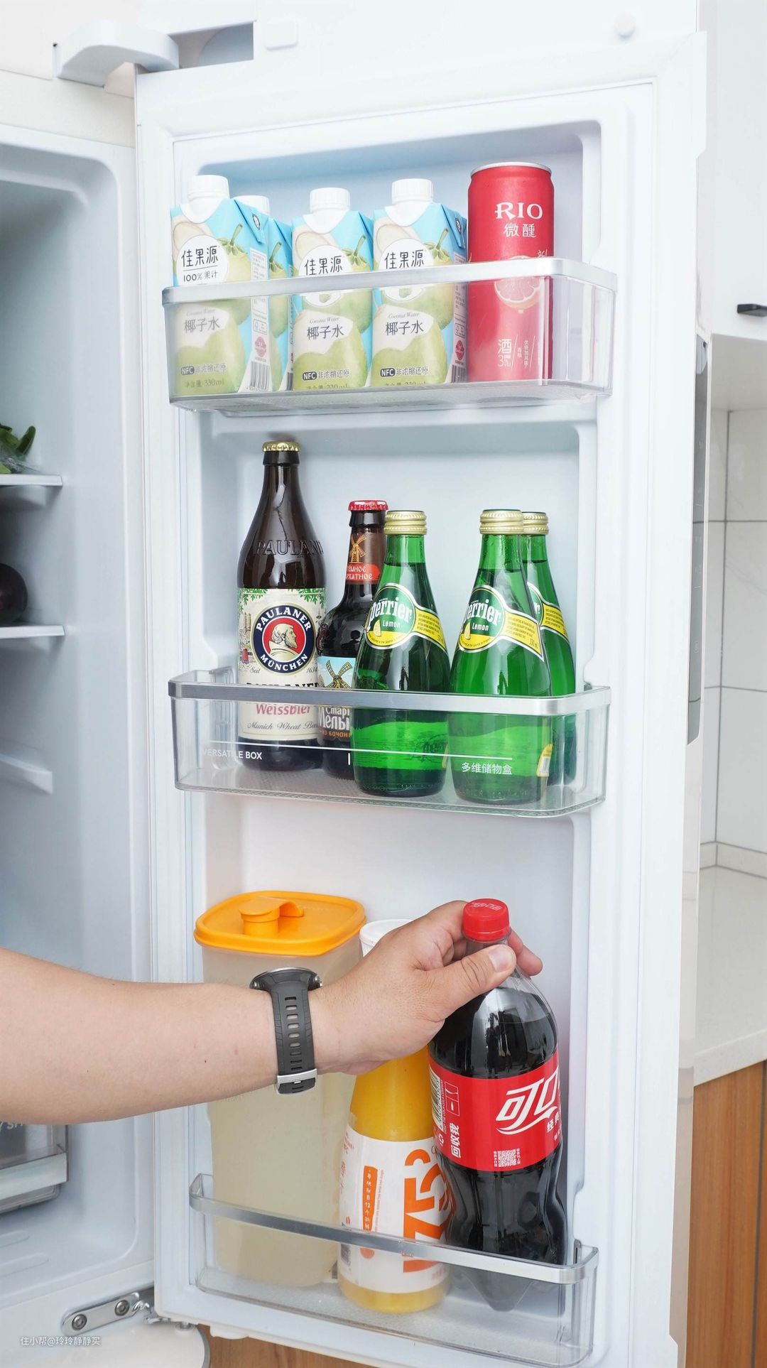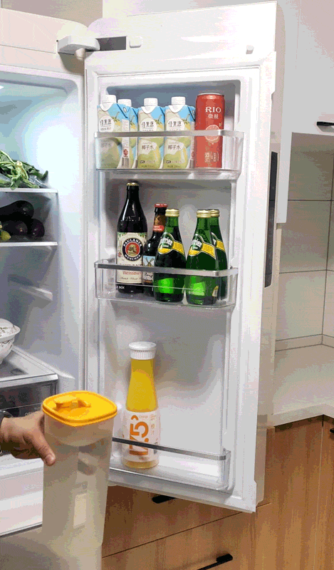 3层储物瓶框,本来就比一般冰箱两层储物瓶框要多一层。而小吉,更完美的利用了这部分空间,那是相当能装。