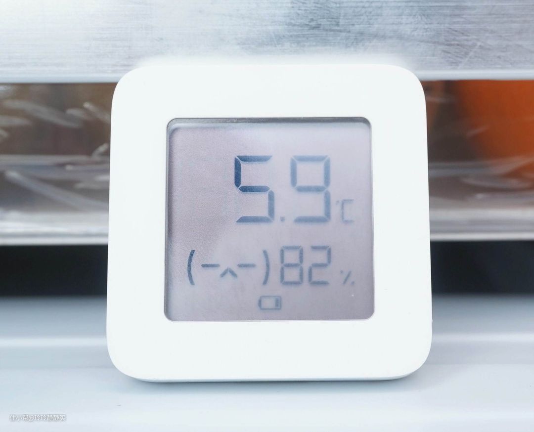 放在里面的温度计,拿出来拍照时,显示湿度仍在80%以上。