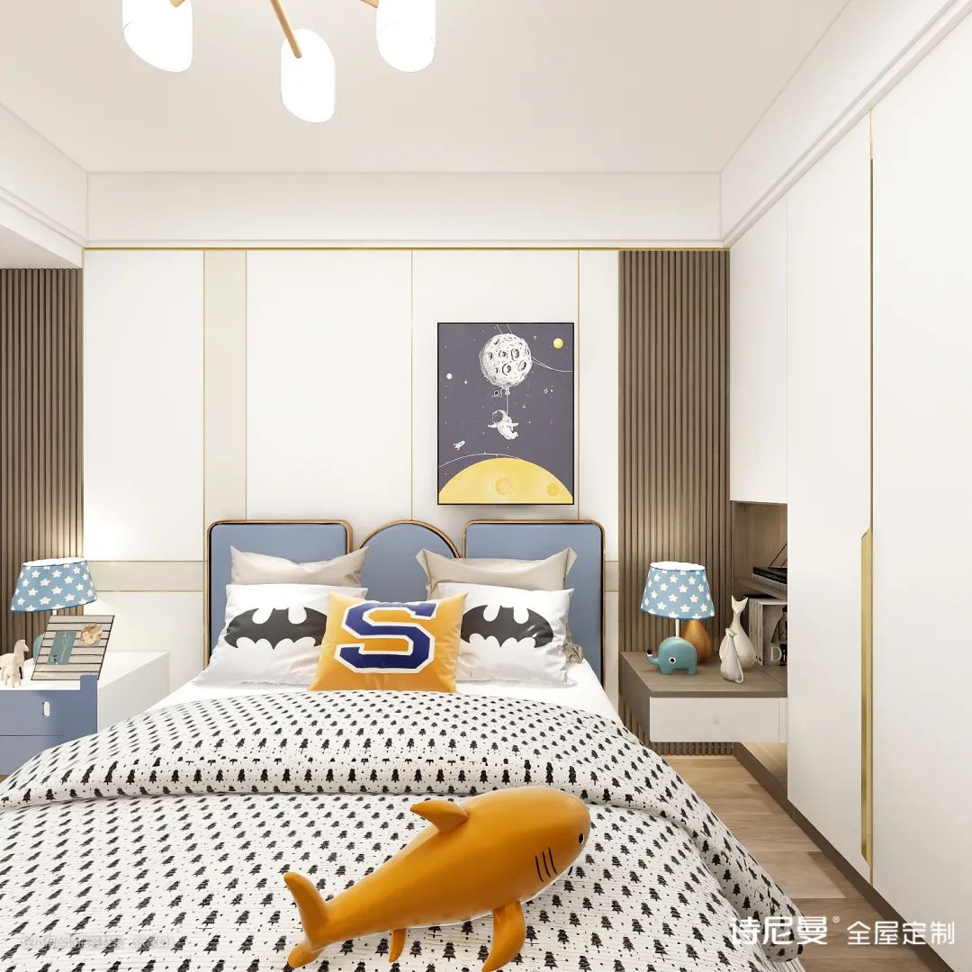 现在儿童房对收纳性要求较高,一般都会设置许多柜子,所以板材一定要选零甲醛的。