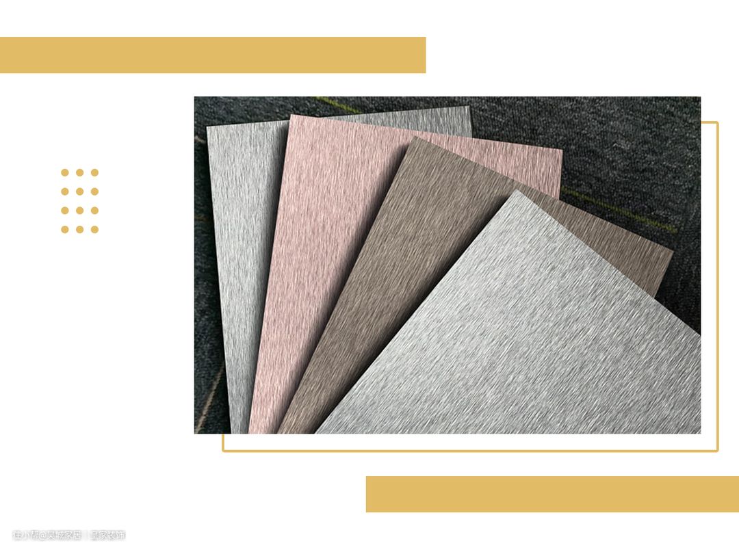 四、金属板,市面上的金属板一般多为铝合金材质,表面的处理工艺一般有,磨砂、镀铬、拉丝等,防水防潮还耐高温。