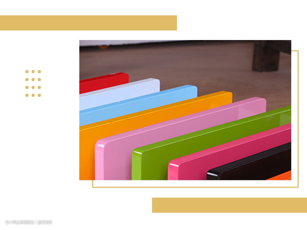 五、烤漆板,样式多样色彩丰富,可以适应大部分的装修风格,还十分容易清洁打理,但硬度也是相对较低的,磕碰易刮花,因为工艺复杂修补起来也不简单。