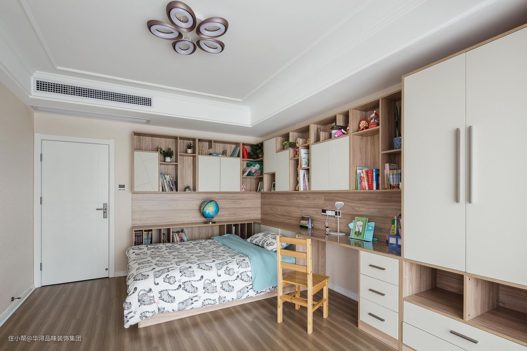 女儿房给人的感觉比较偏日系,靠墙打造了多种多样的柜子,满足了不同物品的摆放,每处功能区都能够得到合理的利用,可以看出来设计者在打造柜子方面可以使费劲了心思。