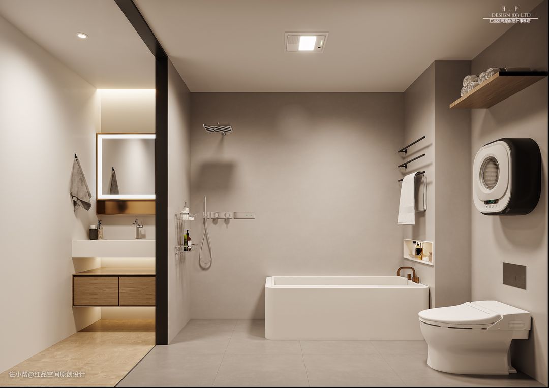 3.内移书房墙壁与门洞做齐,扩大卫生间面积。使用上更加方便,也能提升生活品质。