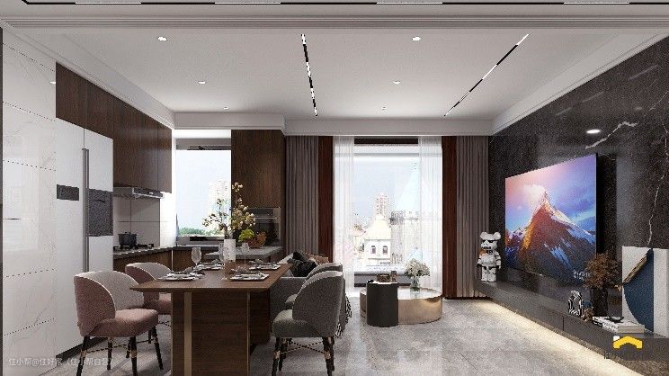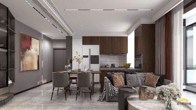 1:崇尚现代极简,整个空间以灰色,深色为主色调