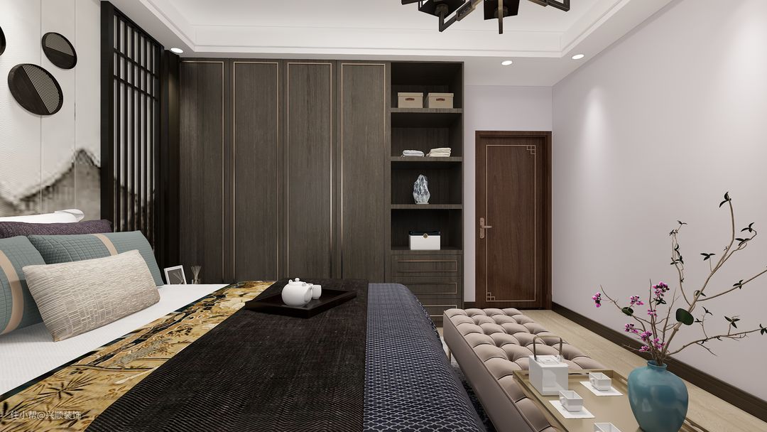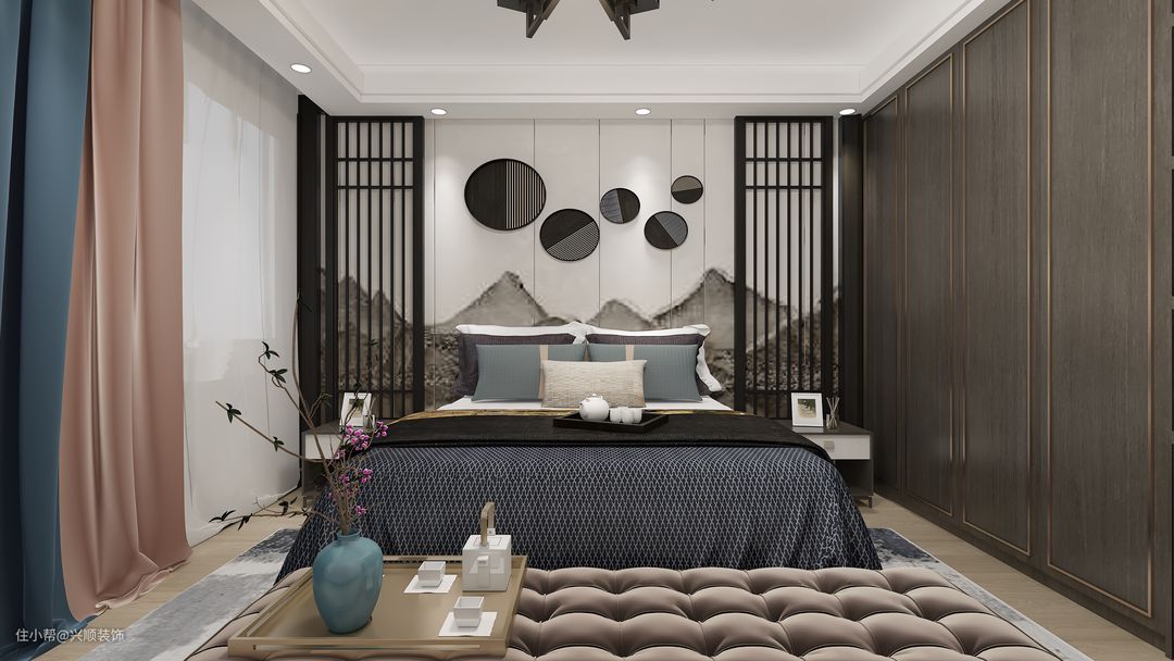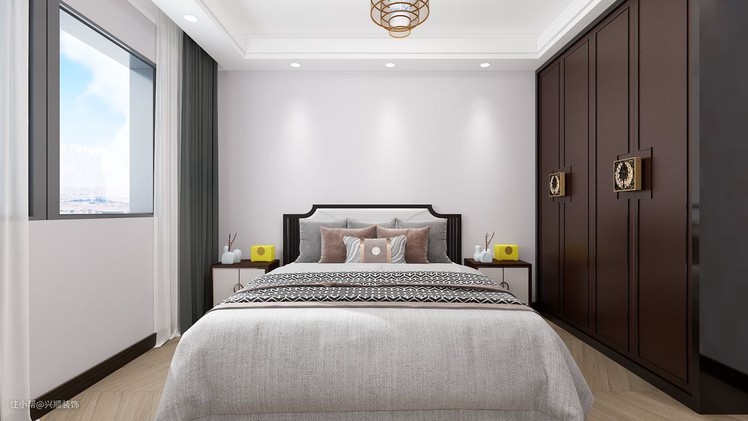 新中式风格的“新”,首先是体现在房间的整体色彩搭配,应用上。