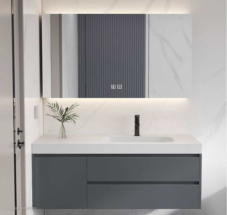 现在很多的成品浴室柜已经将以上工艺及做法完善加工成各个规格尺寸,方便大家安装使用。但是许多新兴台面产品依旧是面盆,固定,储物分开设计。