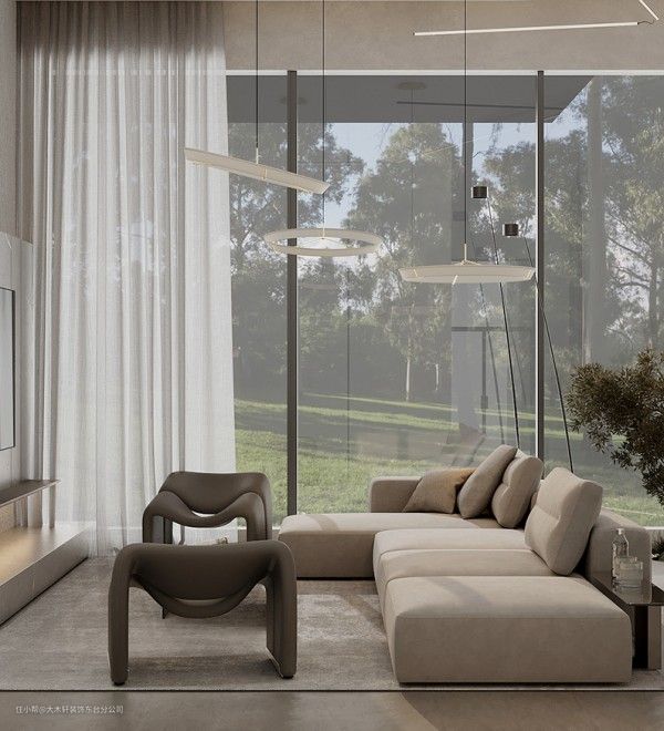 普通居所的落地窗也能做出别致的设计感,也许周围没有好的风景欣赏,但想要打造一个开阔的室内休闲居所听起来也不错,比如在落地窗的形状上做点花样,在室内的布局上做点匹配,所打造出来的档次和高级也符合人的追求体验!