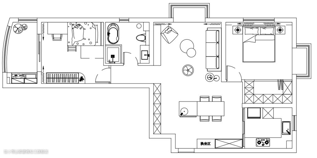 业主要求:想要在公共区域拥有一个中岛台,进出家门时有一个方便的储物鞋柜,希望餐厅空间更加合理一些,同时想要主卧区域能拥有一间独立的衣帽间,卫生间最好可以放些女主非常喜欢的浴缸。