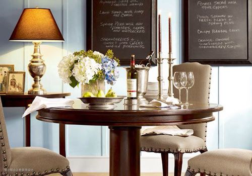 选择一张圆餐桌还是方餐桌?这并不单单取决于餐桌尺寸,还要考虑房间的空间条件,就餐者的生活习惯也很重要。圆形的餐桌比较适宜就餐时交谈,氛围更加轻松、亲密,人数也宜变通。空间狭窄时长方形的桌子较合适。长方形的餐桌也更正式,如果讲究就餐礼仪,再合适不过了。