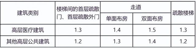 高层公共建筑内楼梯间的首层疏散门、首层疏散外门、疏散走道和疏散楼梯的最小净宽度应符合下表的规定。