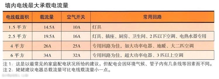 单个回路的电器总量≤空气开关(或漏电保护器)的最大负荷≤电线的最大负荷
