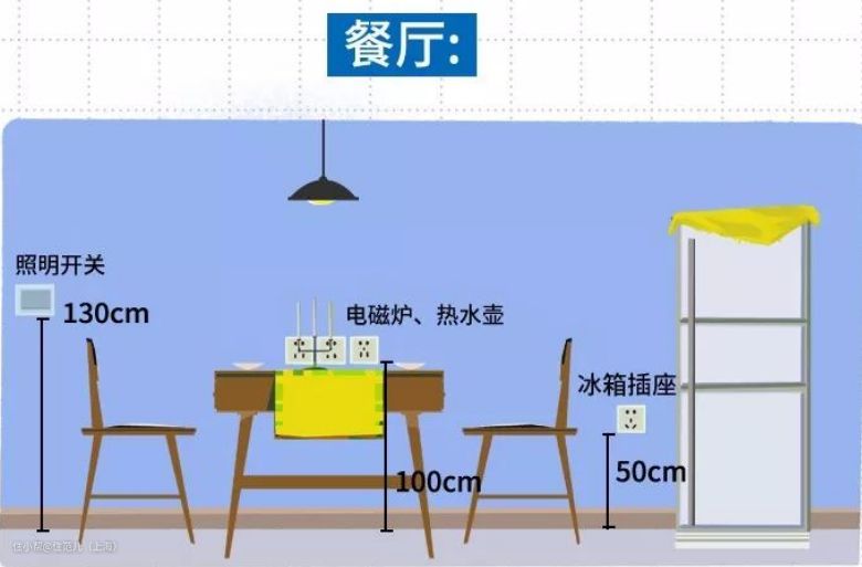 2.厨房插座不能保证每个家电对应一个插座时,固定的大件,电线短的要规划好高度和位置。