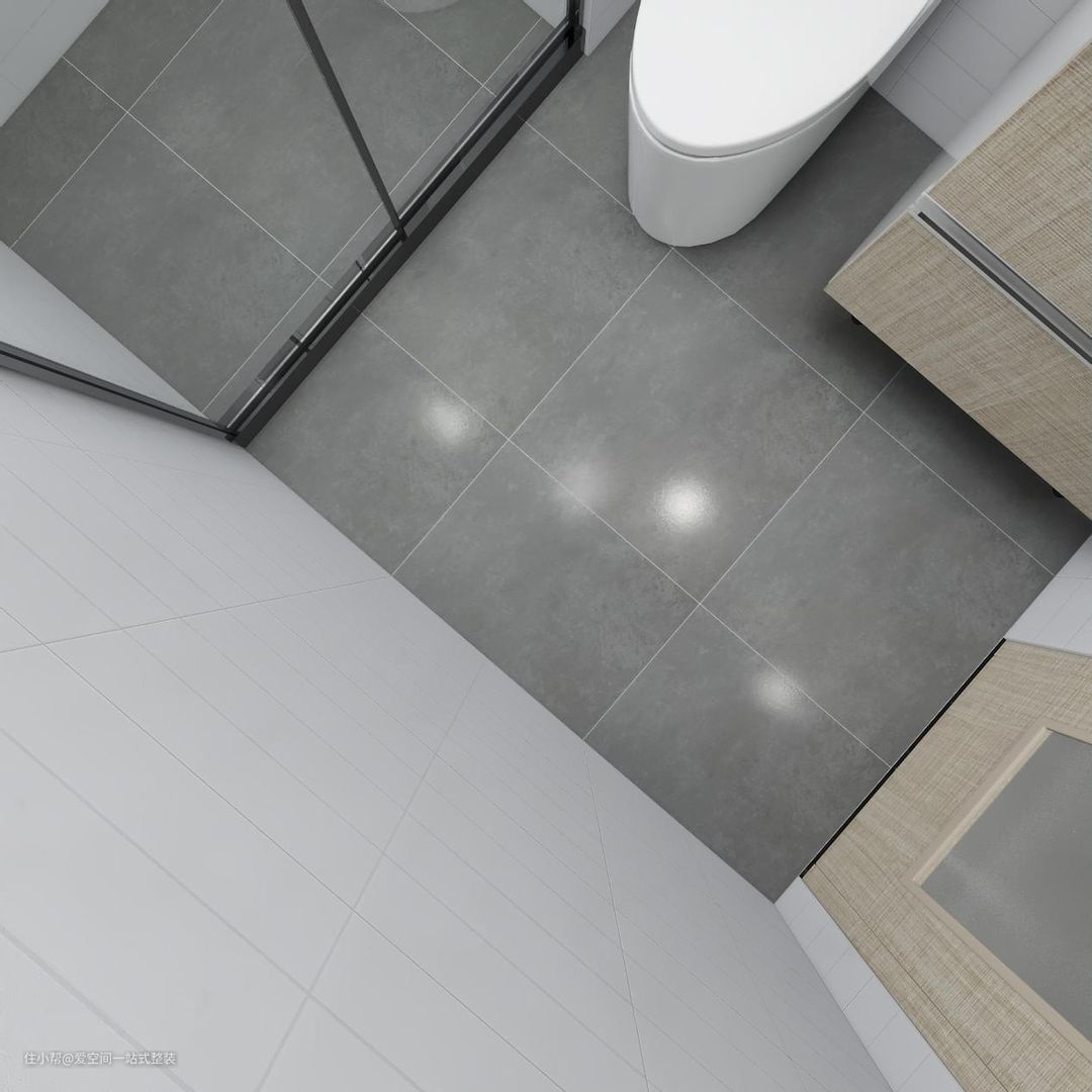 地面瓷砖的选择,需要考虑家庭成员的需求,一般有老人和孩子的家庭,最好选择防滑的地砖,灰色调高级又耐脏,做了美缝,不怕潮湿发霉。