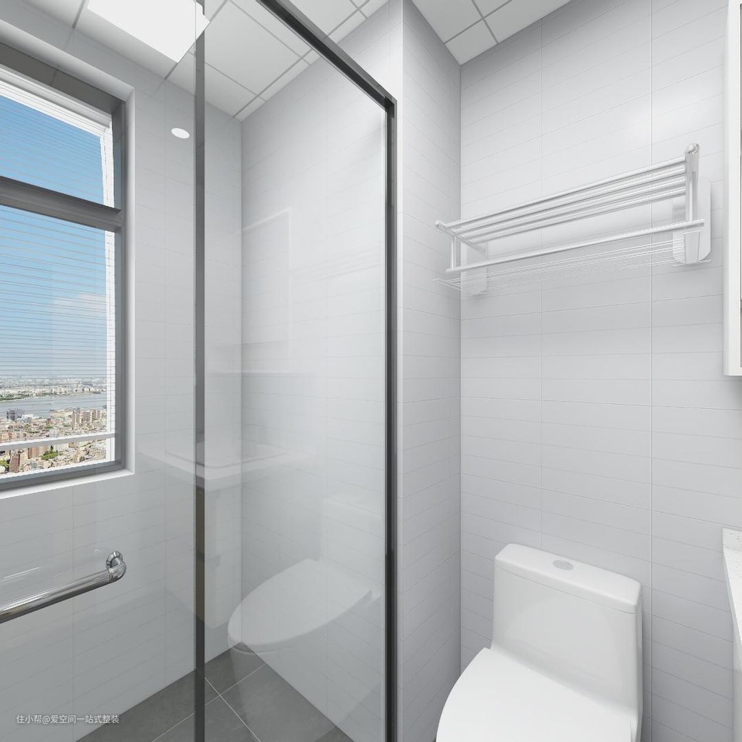 卫生间环境特殊,需要特殊材料的吊顶,一般是铝扣板材质,嵌入式放置节能照明灯,想要智能化管控,可以在入门处的墙上安装智能控制按钮,方便快捷。