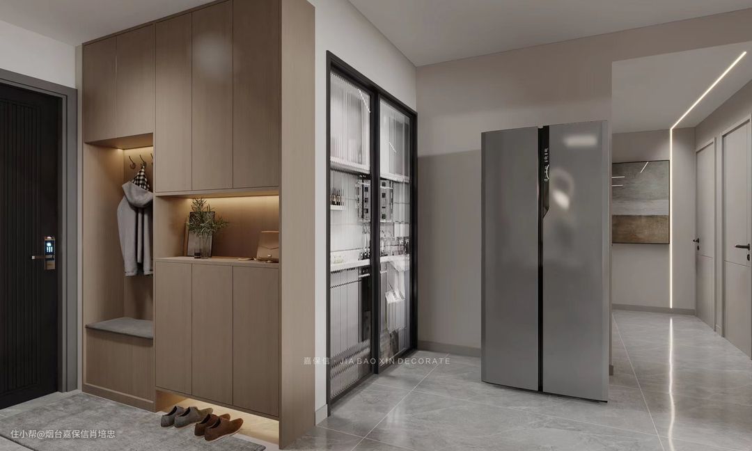 烟台嘉保信 ▏芝罘区山语城103平现代风格装修效果图,业主是刚结婚才几年的一对夫妻,因为关注也有些时间了,身边朋友推荐公司这边是不错的选择,不论是施工、材料还是售后,口碑一直很好的。见面沟通,业主在设计方面要求简单、时尚,空间的利用要合理,装修风格倾向于现代风格。设计师利落的规划,装点之间没有半点多余,将空间利用率最大化的同时,各种材料相互协调,带着时尚的精英气质,呈现的出来是设计师的内涵与品位。整体空间色调传递纯净气息,搭配温润木质元素,营造出静谧优雅的美学氛围。