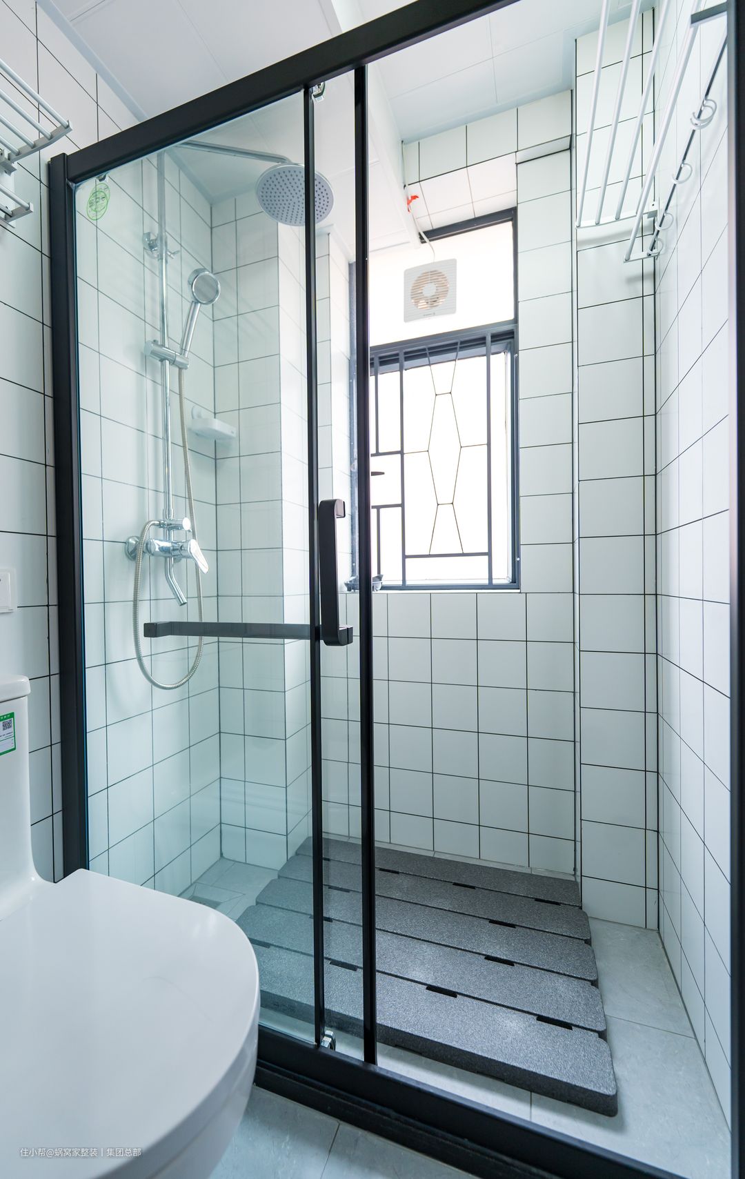 安装长条形地漏,让下水面积增加10倍以上,覆盖面积更广,排水速度也会更快,并将浴室中间的一整块区域抬高,然后四边做上凹槽处理,形成一个中间高,四周低的形态,并且用田字格做防滑处理,再也不怕家里的老人、小孩滑倒。