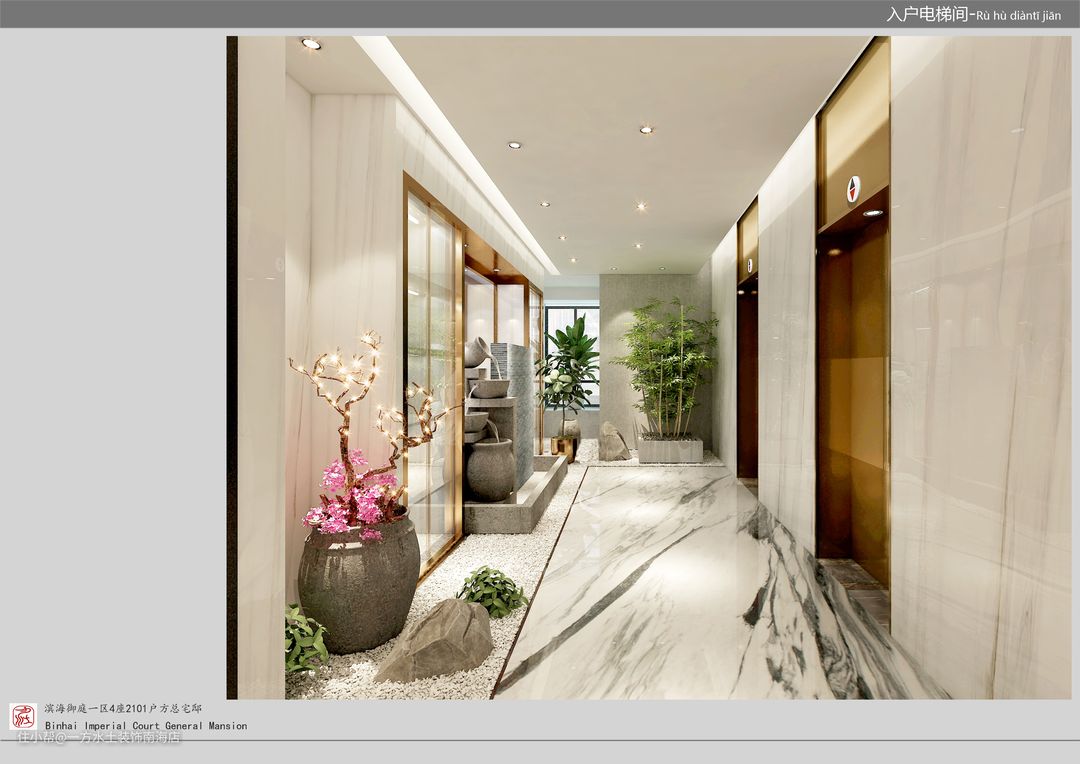 电梯门打开的那一瞬间,映入眼帘的是潺潺的流水,芬芳的花草,绚丽的灯光,恰到好处的布置,构建了一个充满生机的小天地