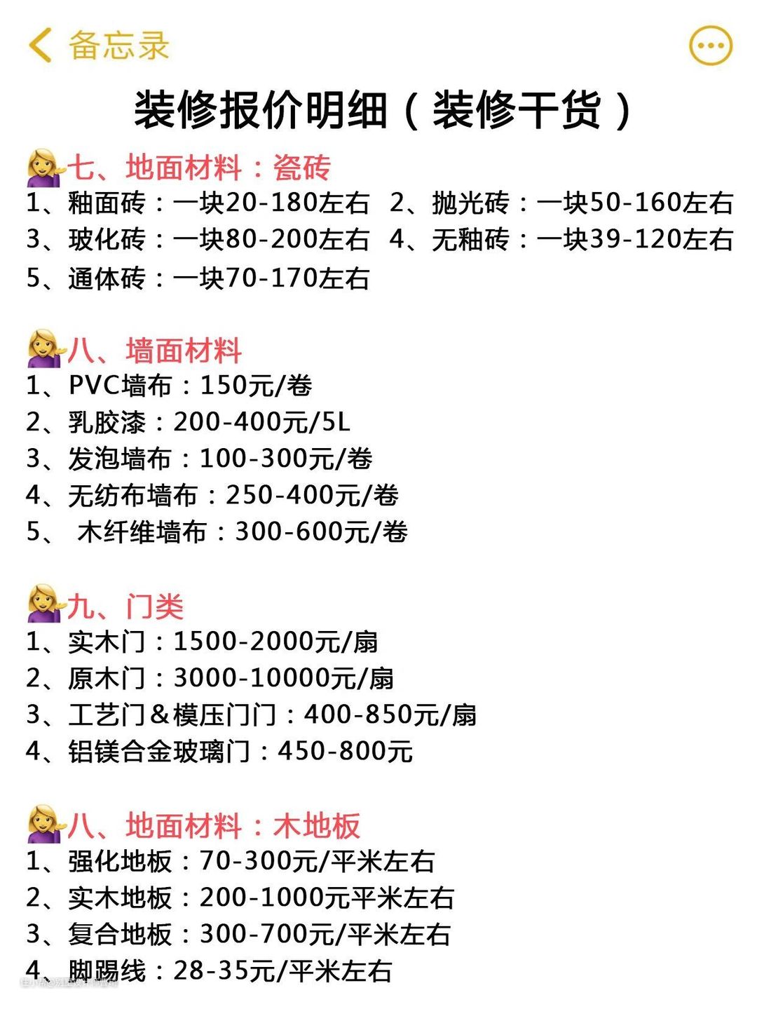 2022年装修材料报价明细别墅设计师曹琦2022-07-14材料明细对于装修预算而言非常重要,如果材料价格把握不准,装修的整体预算也会相差很大。今天就来盘点2022年装修材料的大概价格,当然不同的区域价格肯定是有差异的,以下资料仅供参考。